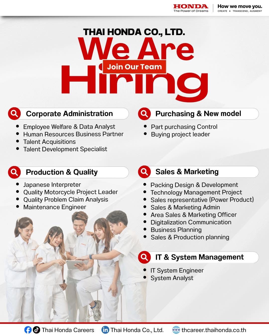 📍สถานที่ทำงาน ไทยฮอนด้า (สำนักงานใหญ่) นิคมอุตสาหกรรมลาดกระบัง กรุงเทพฯ และไทยฮอนด้า (สาขาสำโรง)