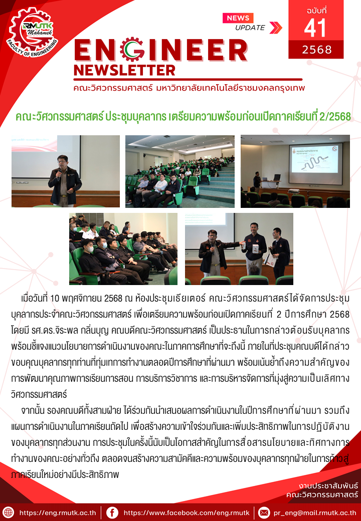 ข่าวประชาสัมพันธ์ คณะวิศวกรรมศาสตร์ ประชุมบุคลากร เตรียมความพร้อมก่อนเปิดภาคเรียนที่ 2/2568 12 พฤศจิกายน 2025 admin 6 Views Post Views: 5