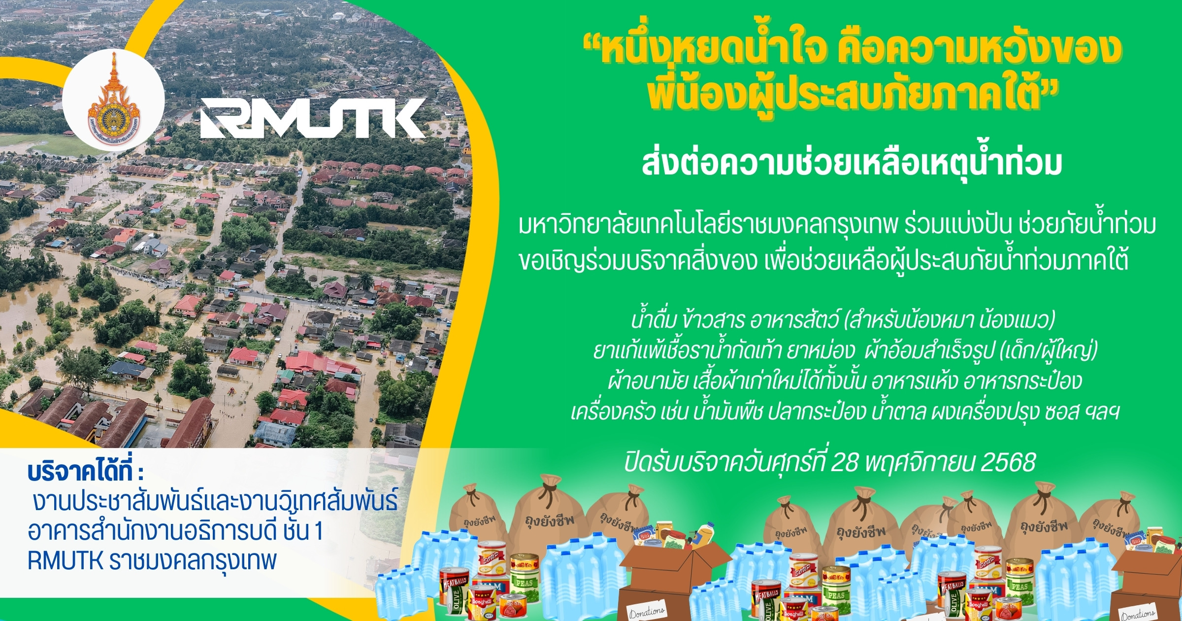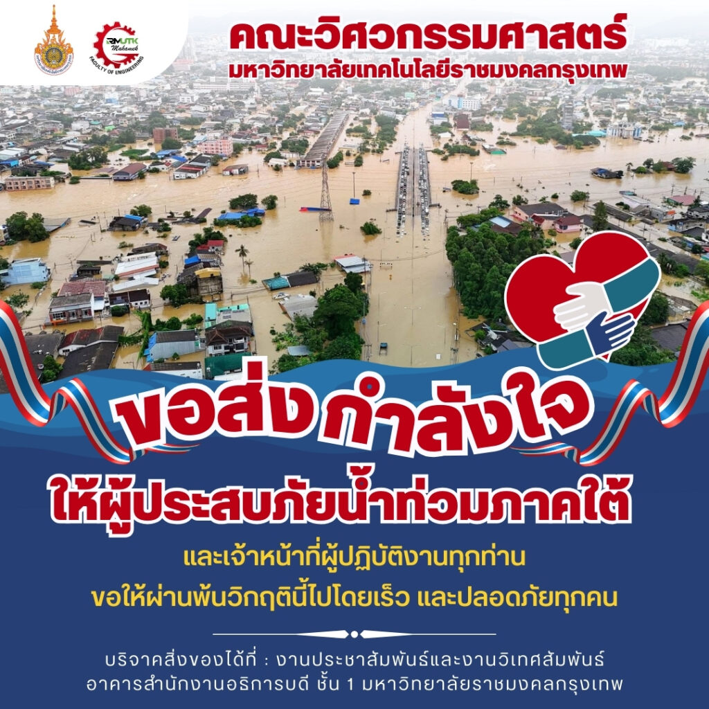 ข่าวประชาสัมพันธ์ คณะวิศวกรรมศาสตร์ ขอส่งกำลังใจให้พี่น้องประชาชนในพื้นที่ภาคใต้ที่ประสบภัยน้ำท่วม 26 พฤศจิกายน 2025 admin 6 Views คณะวิศวกรรมศาสตร์ ราชมงคลกรุงเทพ ขอส่งกำลังใจให้พี่น้องประชาชนในพื้นที่ภาคใต้ที่ประสบภัยน้ำท่วม รวมถึงเจ้าหน้าที่ทุกภาคส่วนที่กำลังปฏิบัติหน้าที่อย่างเต็มกำลัง ขอให้ทุกท่านผ่านพ้นวิกฤติครั้งนี้ไปได้ด้วยดีโดยเร็ว และปลอดภัยทุกคน เราขอเป็นอีกหนึ่งแรงใจเคียงข้างทุกคนเสมอ #น้ำท่วมภาคใต้ #คณะวิศวกรรมศาสตร์ #ราชมงคลกรุงเทพ #RMUTK Post Views: 6