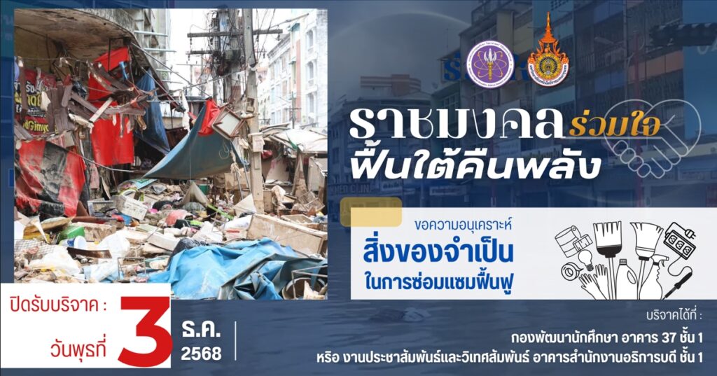 ประชาสัมพันธ์เชิญชวนร่วมบริจาคสิ่งของสำหรับฟื้นฟู ซ่อมแซม พื้นที่ประสบอุทกภัย ทางภาคใต้