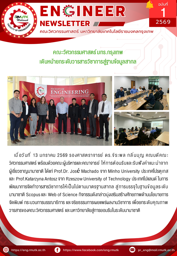 Engineer Newsletter 2569ข่าวประชาสัมพันธ์ คณะวิศวกรรมศาสตร์ มทร.กรุงเทพ เดินหน้ายกระดับวารสารวิชาการสู่ฐานข้อมูลสากล 15 มกราคม 2026 admin 7 Views Post Views: 3