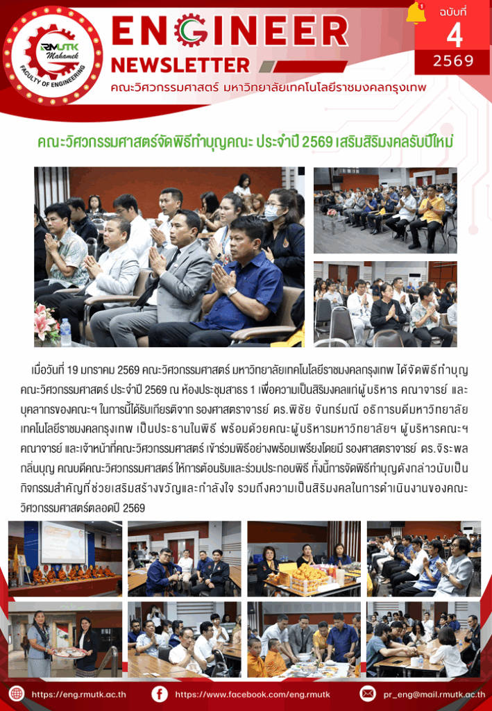 Engineer Newsletter 2569ข่าวประชาสัมพันธ์ พิธีทำบุญคณะวิศวกรรมศาสตร์ ประจำปี 2569 เสริมสิริมงคลรับปีใหม่ 20 มกราคม 2026 admin 10 Views Post Views: 8