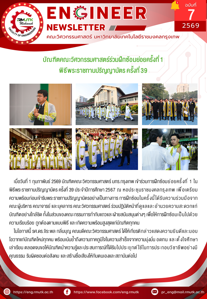 Engineer Newsletter 2569ข่าวประชาสัมพันธ์ บัณฑิตคณะวิศวกรรมศาสตร์ร่วมฝึกซ้อมย่อยครั้งที่ 1 พิธีพระราชทานปริญญาบัตร ครั้งที่ 39 3 กุมภาพันธ์ 2026 admin 3 Views Post Views: 3
