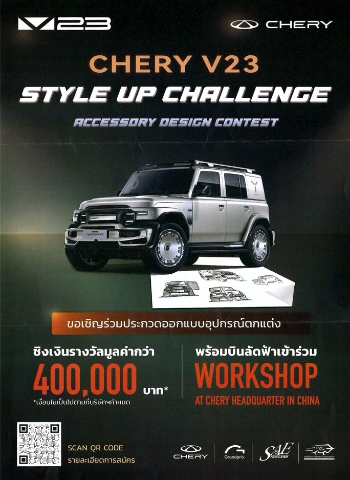 ข่าวประชาสัมพันธ์ ขอเชิญชวนนักศึกษาที่สนใจส่งผลงานเข้าประกวดออกแบบอุปกรณ์ตกแต่งรถ Chery V23 Style Up Challenge ชิงเงินรางวัลมูลค่า 4 แสนบาท 5 กุมภาพันธ์ 2026 admin 83 Views เนื่องด้วยบริษัท กรังด์ปรีซ์ อินเตอร์เนชั่นแนล จำกัด (มหาชน) ร่วมกับ เชอรี ประเทศไทย และสมาคมวิศวกรรมยานยนต์ไทย จัดประกวดออกแบบอุปกรณ์ตกแต่งรถ "Chery V23 Style Up Challenge" ขึ้น โดยมีระยะเวลาในการส่งผลงานตั้งแต่ วันนี้ ถึง 14 กุมภาพันธ์ 2569 และประกาศผลการประกวดในวันสุดท้ายของงานบางกอก อินเตอร์เนชั่นแนล มอเตอร์โชว์ ครั้งที่ 47 ซึ่งบริษัทเล็งเห็นถึงประโยชน์ในการ จัดกิจกรรมครั้งนี้ต่อเยาวชนรุ่นใหม่ที่สนใจในเรื่องของการออกแบบ โดยมีเงินรางวัลมูลค่ารวม 400,000 บาท และได้เดินทางไปร่วม Workshop กับบริษัท เชอรีฯ ที่สาธารมรัฐประชาชนจีน บริษัทมีความประสงค์ที่จะแนะนำโครงการนี้ โดยขอประชาสัมพันธ์เชิญชวนนักศึกษาที่สนใจเข้าร่วมการประกวดออกแบบอุปกรณ์ตกแต่งรถ สามารถสมัครเข้าร่วมโครงการได้ทาง QR Code รายละเอียดการประกวดและการสมัครเข้าร่วมโครงการฯ (คลิก) Post Views: 53