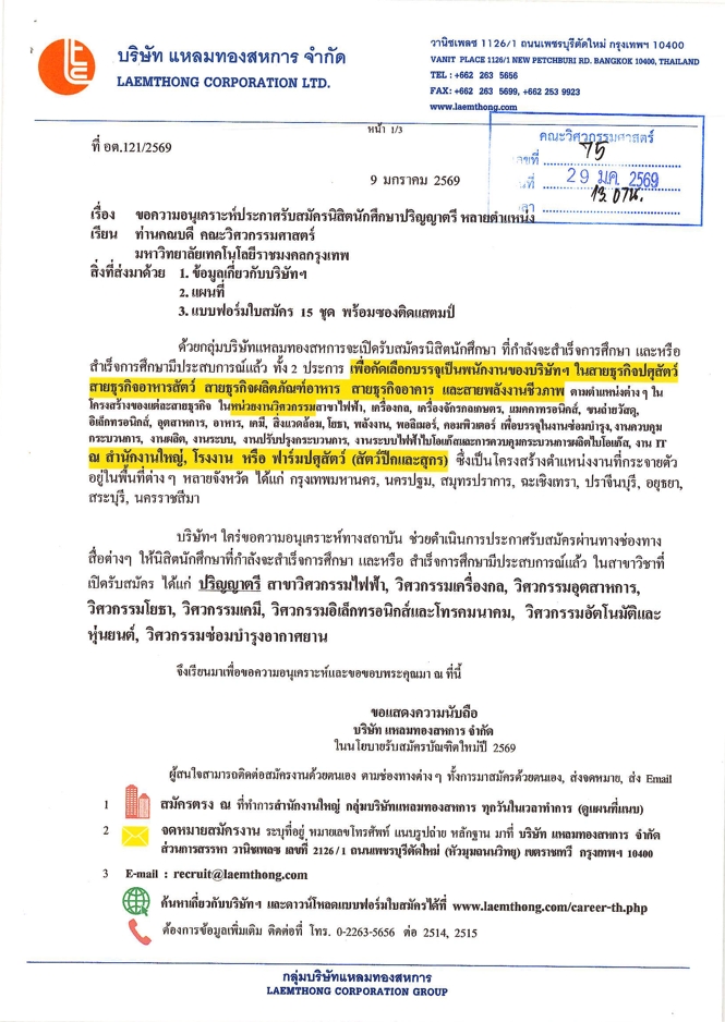 ข่าวประชาสัมพันธ์ประกาศรับสมัครงาน บ.แหลมทองสหการ จำกัด รับสมัครนักศึกษาปริญญาตรีวิศวกรรมศาสตร์ หลายตำแหน่ง 5 กุมภาพันธ์ 2026 admin 25 Views Post Views: 11