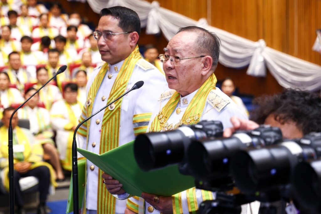 จากนั้นรองศาสตราจารย์ ดร.พิชัย จันทร์มณี อธิการบดี กล่าวเบิกบัณฑิตที่สำเร็จการศึกษา ประจำปีการศึกษา 2567 เข้ารับปริญญาบัตร โดยรายงานว่า ในปีการศึกษานี้มีผู้สำเร็จการศึกษาที่ผ่านความเห็นชอบจากสภามหาวิทยาลัย รวมทั้งสิ้น 1,339 คน จาก 9 ส่วนงาน ประกอบด้วย คณะอุตสาหกรรมสิ่งทอ 12 คน คณะครุศาสตร์อุตสาหกรรม 32 คน คณะวิศวกรรมศาสตร์ 149 คน คณะวิทยาศาสตร์และเทคโนโลยี 204 คน คณะเทคโนโลยีคหกรรมศาสตร์ 237 คน คณะศิลปศาสตร์ 212 คน คณะบริหารธุรกิจ 469 คน วิทยาลัยนานาชาติ 4 คน และสถาบันวิทยาศาสตร์ นวัตกรรม และวัฒนธรรม 20 คน