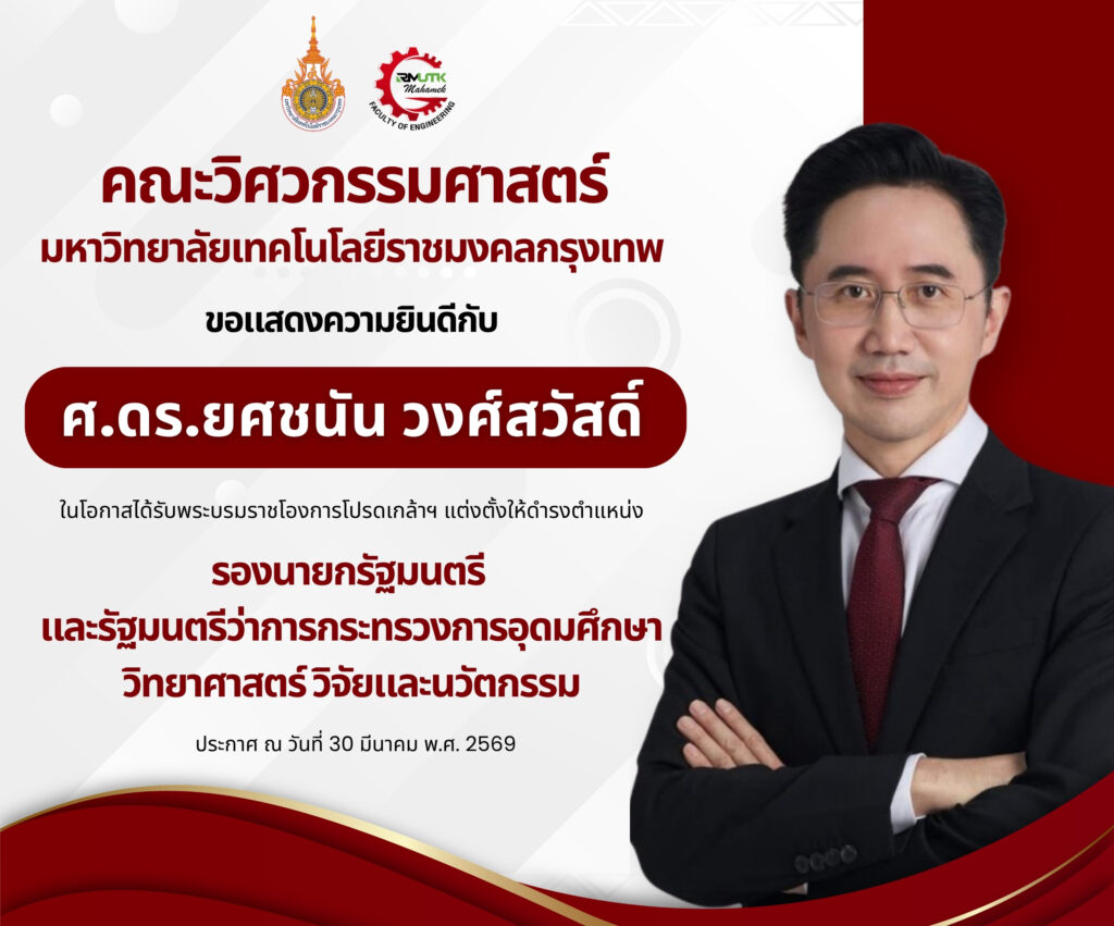 ข่าวประชาสัมพันธ์ ขอแสดงความยินดีกับ ศ.ดร.ยศชนัน วงศ์สวัสดิ์ ในโอกาสได้รับพระราชโองการโปรดเกล้าฯ แต่งตั้งให้ดำรงตำแหน่ง รองนายกรัฐมนตรี และรัฐมนตรีว่าการกระทรวงการอุดมศึกษา วิทยาศาสตร์ วิจัยและนวัตกรรม 31 มีนาคม 2026 admin 43 Views 111477 Post Views: 36